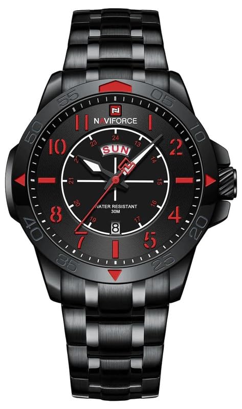 Naviforce - Naviforce 9204S – Elegant Men's Watch with set and Stainless Steel Strap Black/Red
