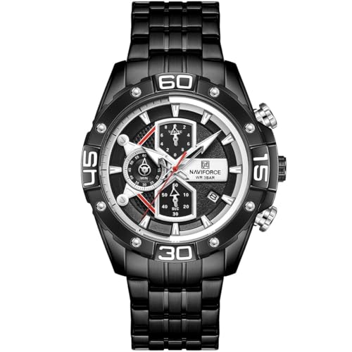 Naviforce - نافي فورس ساعة انالوج كوارتز اصدار رياضي للرجال - كرونوغراف، سوار مطاطي، عقارب مضيئة، مقاومة للماء حتى عمق 50 متر، اسود