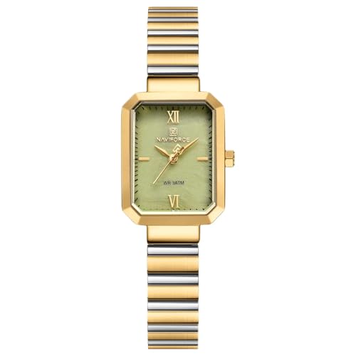 Naviforce - نافي فورس ساعة كوارتز انالوج للنساء - توقيت مزدوج، عرض التاريخ، سوار شبكي، مؤشرات مضيئة، مقاومة للماء حتى عمق 30 متر، ذهبي - اخضر
