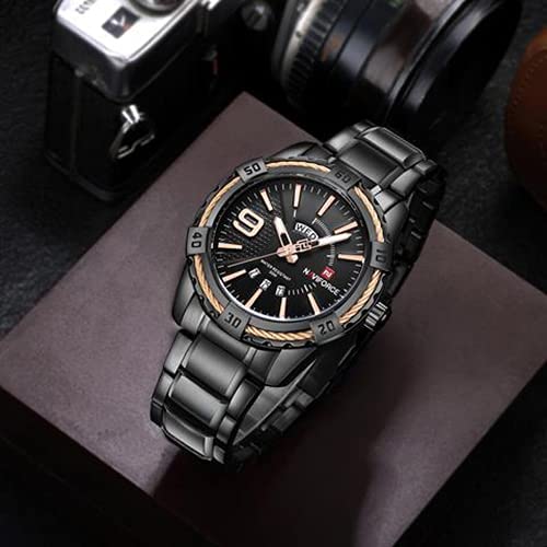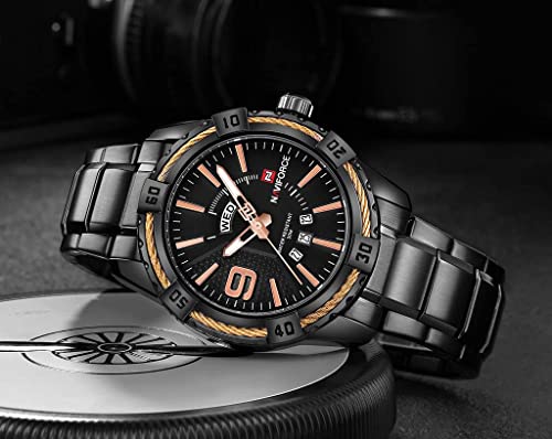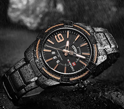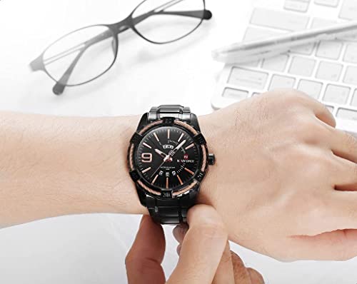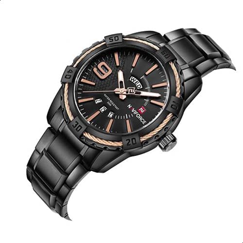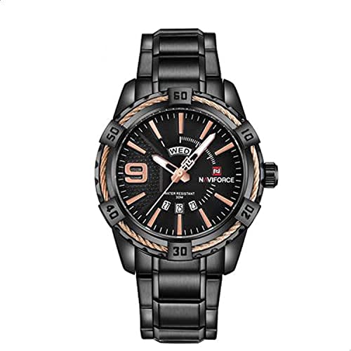Naviforce - ساعة ستانلس ستيل دائرية انالوج بعقارب للرجال من نافي فورس 9117S B-RG، اسود