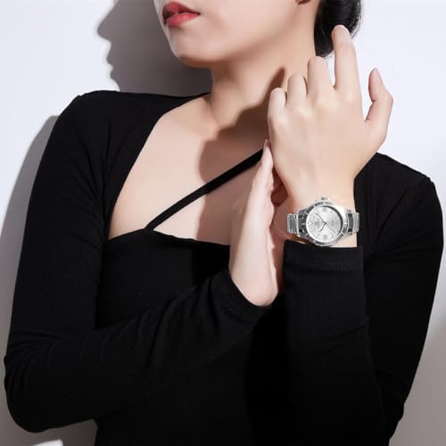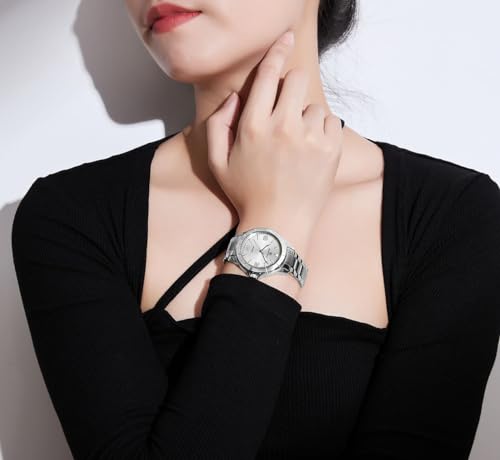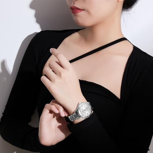 Naviforce - نافي فورس NF5022 S W للنساء موديل اصلي NF5022 لون نظري مينا ابيض وسوار معدني فضي رقمي تناظري