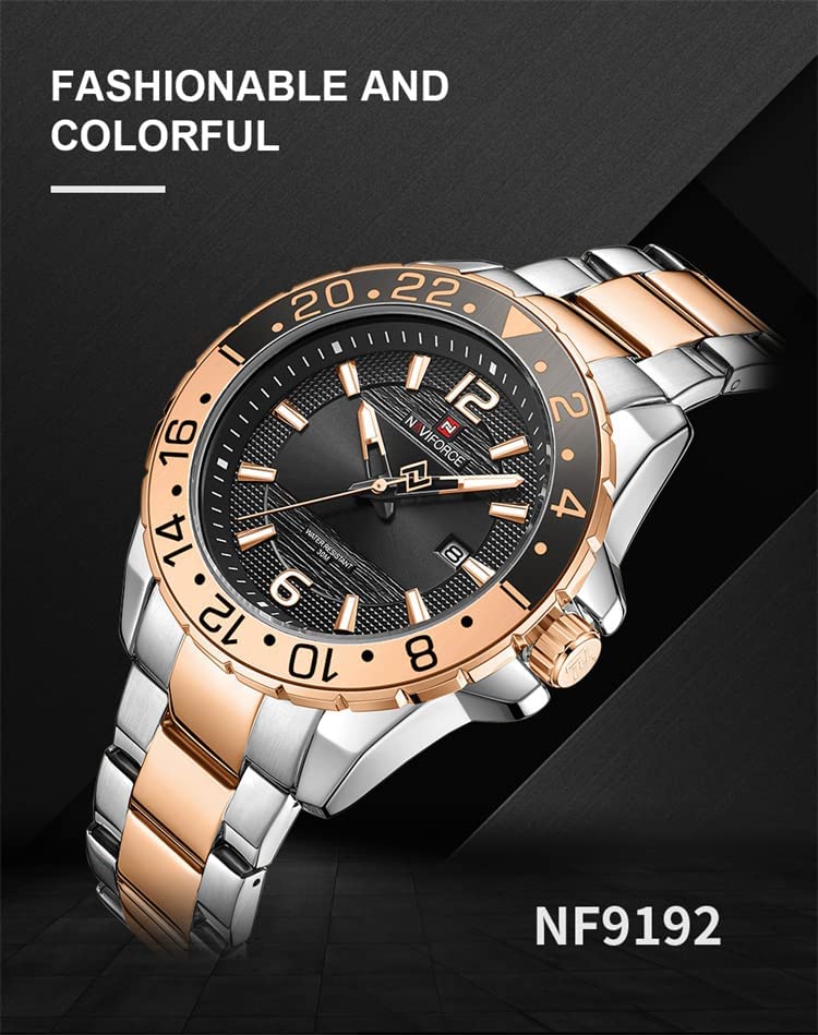 Naviforce - ساعة للرجال من نافي فورس، مصنوعة من فولاذ مقاوم للصدأ بحركة كوارتز، مقاومة للماء، مع خاصية التقويم والفضاء اللوني المعياري أحمر وأخضر وأزرق، موديل nf9192