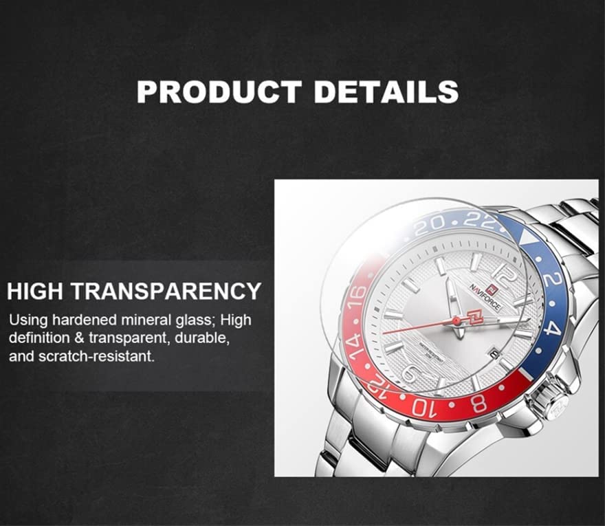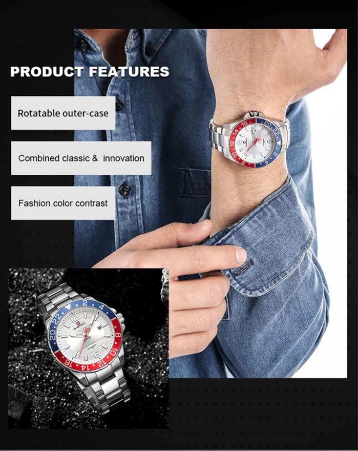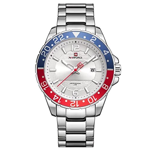 Naviforce - ساعة يد بنظام حركة كوارتز من الفولاذ المقاوم للصدأ مقاومة للمياه بتصميم حبيبي وتقويم وإطار بلونين من نافي فورس، NF9192