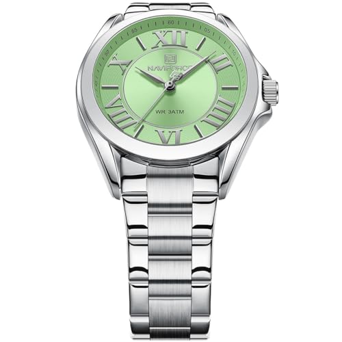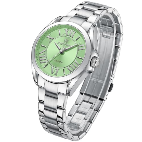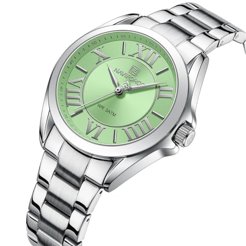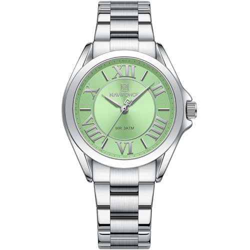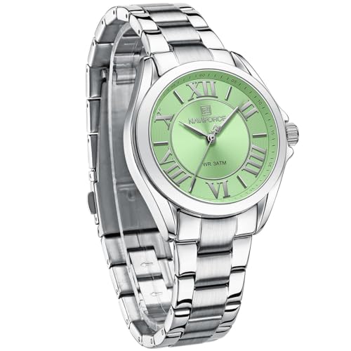 Naviforce - ساعة يد NF 5037-S-GN للنساء من نافي فورس لدريم NF 5037 ومينا أخضر وحزام معدني بلون فضي