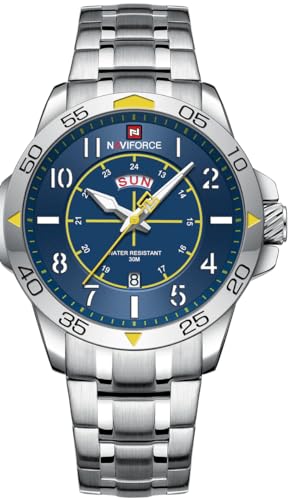 Naviforce - نافي فورس ساعة للرجال 9204S S-BE-S، تناظري، بمينا فضة، بسوار فضة
