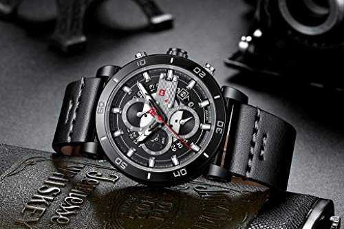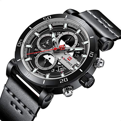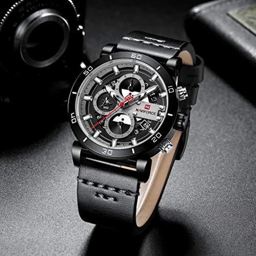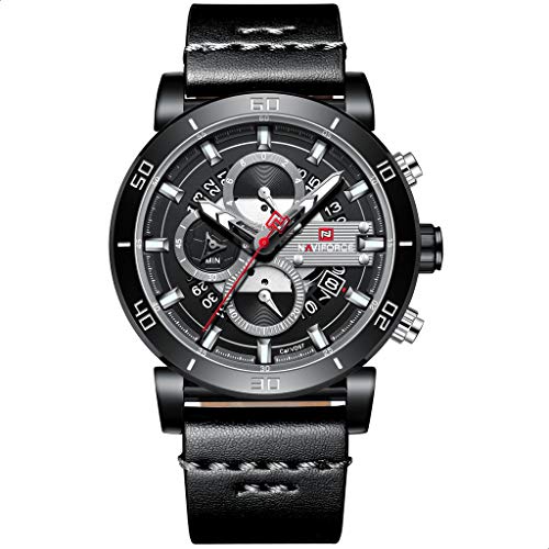 Naviforce - ساعة بحركة أوتوماتيك وعرض أنالوج وسوار جلد أسود للرجال من نافي فورس، موديل 9131 B-GY-B