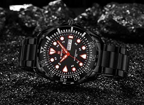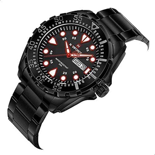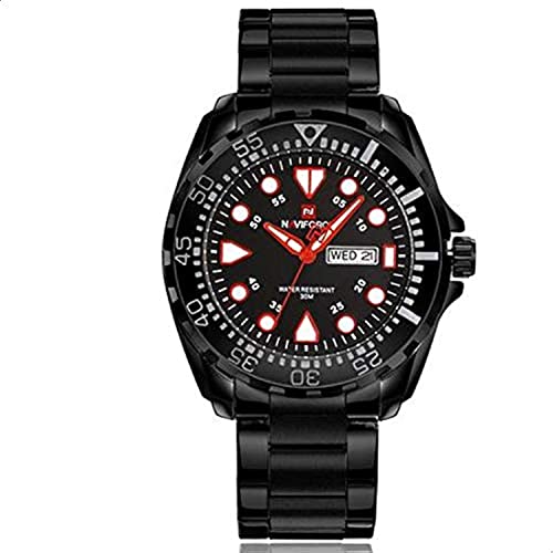Naviforce - ساعة بحركة كوارتز أوتوماتيكية وعرض أنالوج وسوار من الستانلس ستيل للرجال من سيتيزن، موديل ‎9105 B-B-W‎، لون أسود