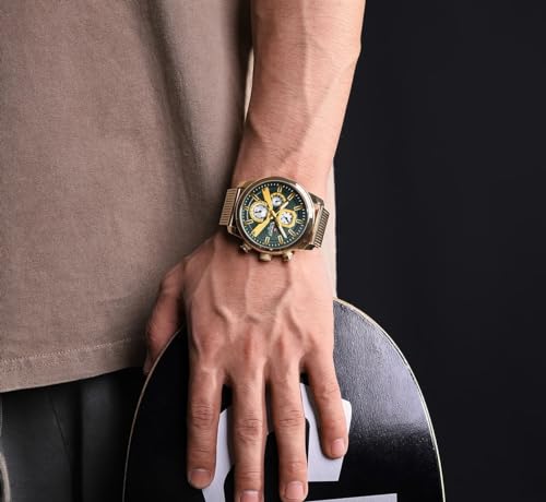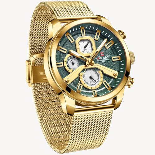 Naviforce - نافي فورس ساعة للرجال - ذهبي-اخضر، رقمي تناظري