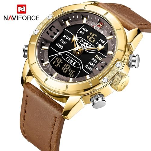 Naviforce - ساعة بحركة الكوارتز وعرض أنالوج من نافيفورس مع سوار جلد أسود للرجال من بوس، موديل 9153L G-B-L.BN