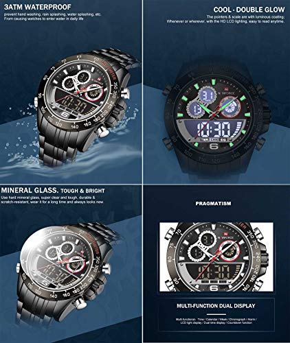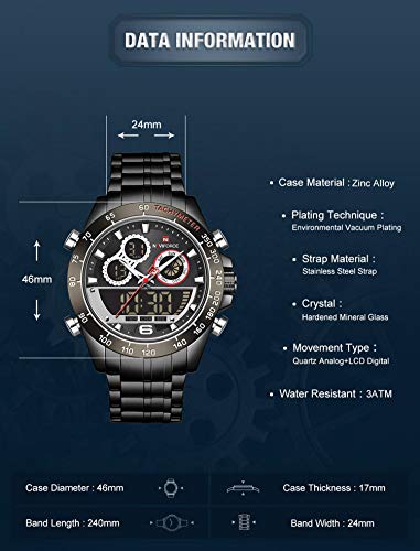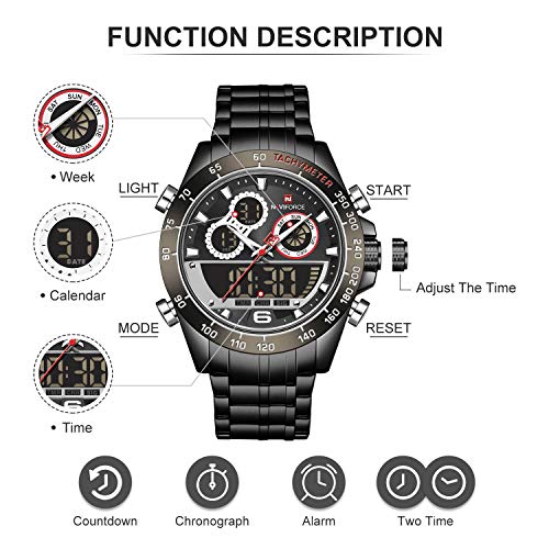 Naviforce - ساعة بحركة كوارتز وعرض انالوج وسوار من فولاذ مقاوم للصدأ للرجال من سيتيزن، أسود، 9188 B-B-B