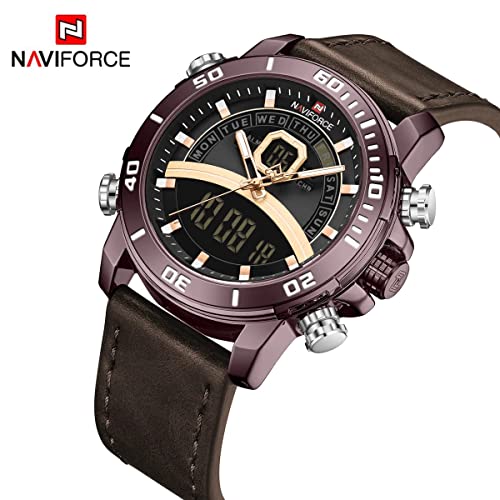 Naviforce - ساعة يد بحركة كوارتز وعرض أنالوج للرجال من نافي فورس، سوار جلد بلون بني، موديل 9181L CE-B-D.BN