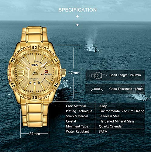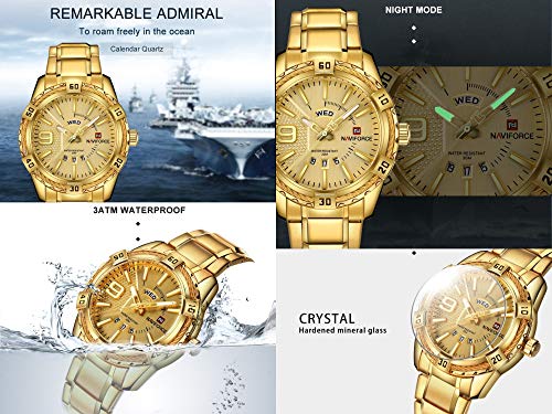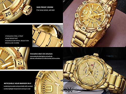 NAVIFORCE - نافي فورس ساعة يد كوارتز كاجوال للرجال من الستانلس ستيل مقاومة للماء لعرض التاريخ واليوم (NF9117S-GG), ذهبي, سوار