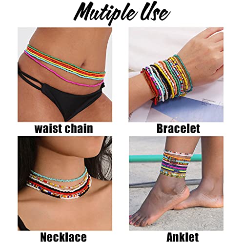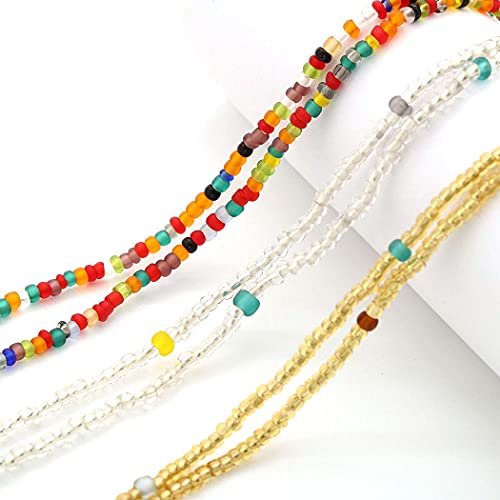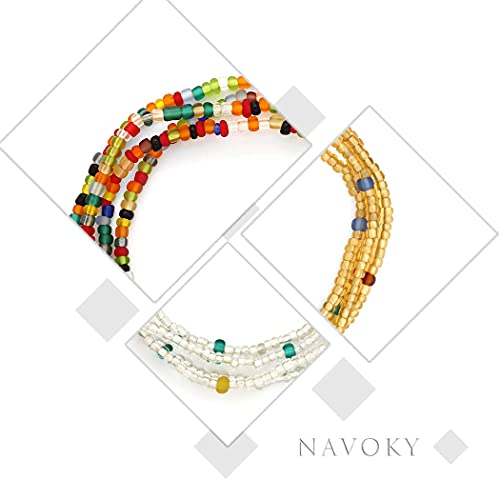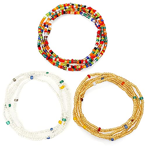 Navoky - نافوكي سلسلة خصر من الخرز الافريقي، سلاسل مرنة ملونة للبطن والجسم، اكسسوارات مجوهرات للشاطئ للنساء والفتيات (3 قطع)