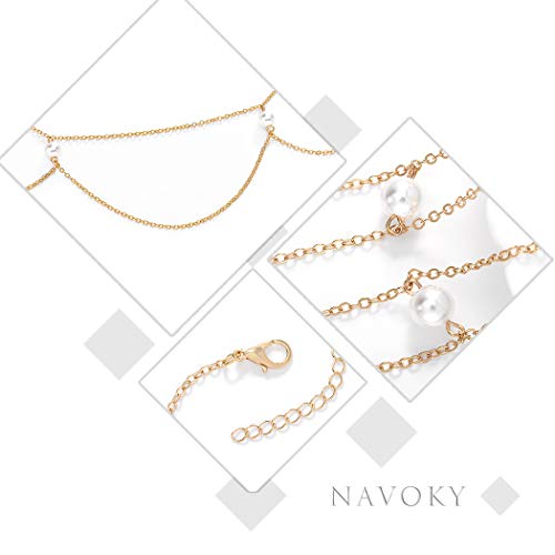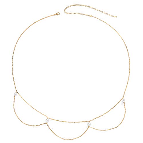 Navoky - سلسلة البطن والخصر متعددة الطبقات من اللؤلؤ والذهب - سلاسل الجسم - مجوهرات الصيف والشاطئ، اكسسوارات للنساء والفتيات من نافوكي
