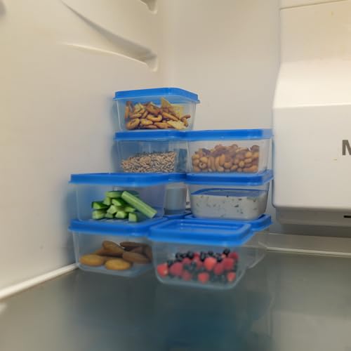 - سوف تحصل على 10 حاويات مربعة صغيرة. يبلغ طول كل حاوية حوالي 5.5 سم (2.2 انش) وعرض 6 سم (2.3 انش) وعمق 3.5 سم (1.4 انش)