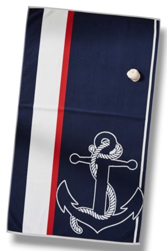 Generic - بشكير قطن 100% بتصميم مرساة بحرية، أزرق كحلي وأبيض وأحمر، 160×90 سم ثقيل فاخر عالي الجودة