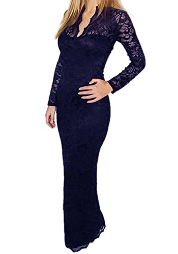 Generic - فستان دانتيل طويل، لون كحلي ، للنساء