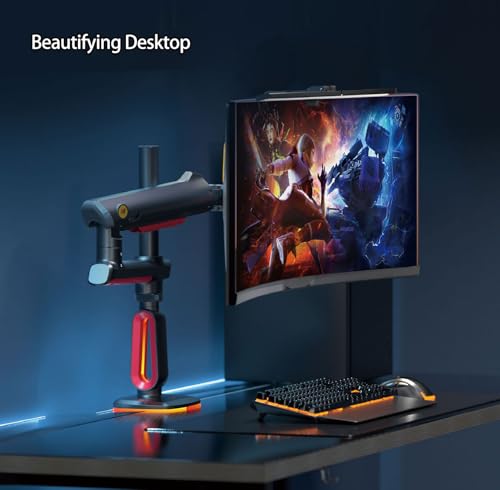 - قابل للتعديل - ذراع حامل شاشة الألعاب يدعم ضبط الزوايا بمرونة، ارتفاع عمودي يصل إلى 26 سم، دوران 360°، زوايا إمالة -50° إلى +50°، زوايا دوارن جانبي -90° إلى +90°، أقصى تمديد للذراع حتى 63 سم.