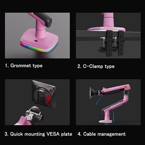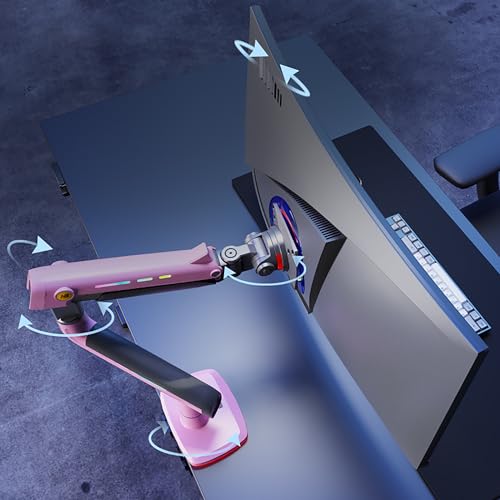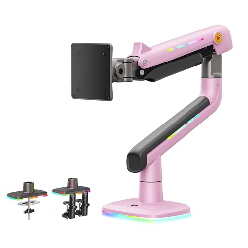 NB ERGONOMIC - ذراع شاشة العاب من ان بي او لشاشة 32 الى 60 انش، تحمل حتى 20 كجم، فيسا 75/100، ضوء RGB، شديد التحمل، متعدد الزوايا قابل للتعديل، الومنيوم ممتاز، زهري