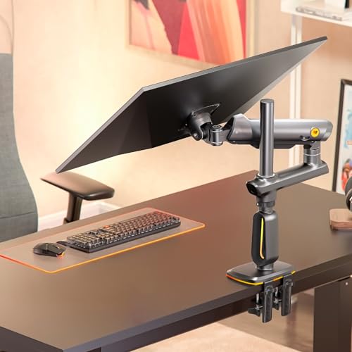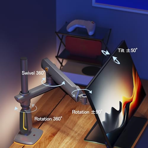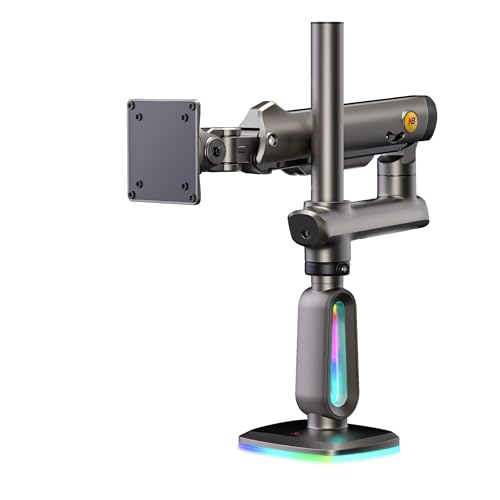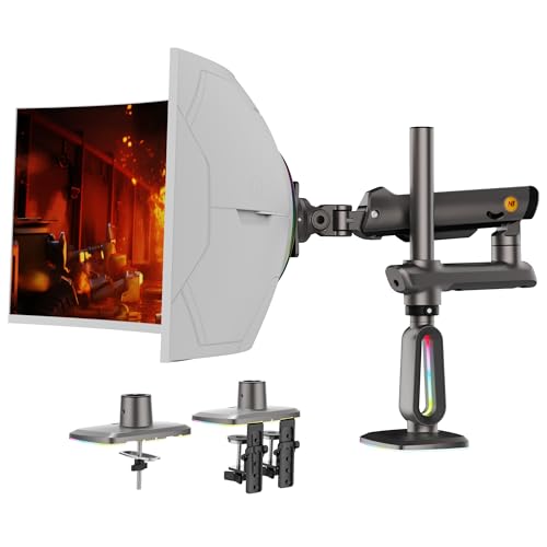 NB ERGONOMIC - ذراع شاشة ألعاب بارتفاع عالي لشاشة مقاس من 32 إلى 60 بوصة، يتحمل حتى 20 كجم، فيسا 75/100، ضوء RGB، شديد التحمل، قابل للتعديل بزوايا متعددة، ألومنيوم ممتاز، امتداد ذراع طويل، رمادي وأسود من ان بي