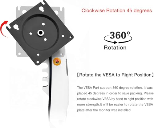 - ☀ شاشات عالمية: يدعم الشاشات مقاس 17-30 بوصة ووزن 0.9-4.3 كجم لكل شاشة. يتوافق مع معيار فيسا 75 × 75 ملم و100 × 100 ملم، مع لوحة فيسا بالحجم الكامل 118 × 118 ملم. مثالي للشاشات التي تحتوي على فتحات فيسا داخل المناطق السفلية (قد تكون هناك حاجة إلى مسامير وفواصل أطول). يسمح تصميم لوحة فيسا بالدوران الكامل 360 درجة لتوفير التخصيص الأمثل.