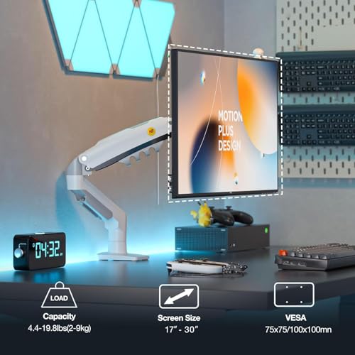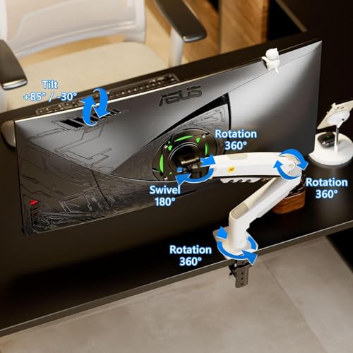 MAJESTY - حامل شاشة عالمي دوار بذراع واحد من نورث بيو جلوبال مع ذراع زنبركي غاز لشاشات 17-30 بوصة (2K-9K) بلون أبيض F80-XE