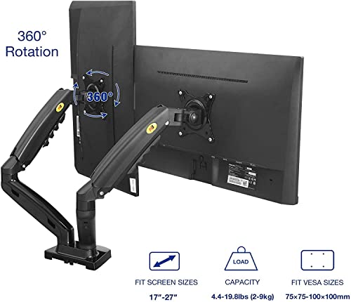 nb - NB حامل شاشة مزدوج من نورث بايو، ذراع كمبيوتر دوار كامل الحركة لشاشتين 17-30 بوصة مع سعة تحميل 4.4 ~20 باوند لكل F160، معدن، ان بي