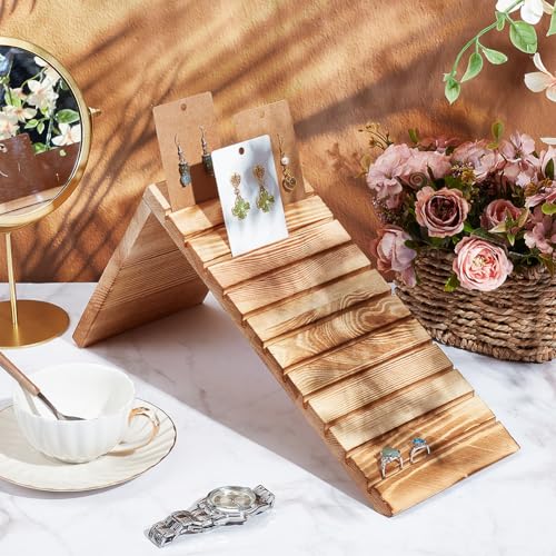 NBEADS - ان بيدز حامل خشبي لعرض الاقراط من 11 فتحة بطاقات مائل الخلف منظم المجوهرات والاقراط لبيع الصور والبطاقات والمجوهرات 13 × 5.5 8 انش