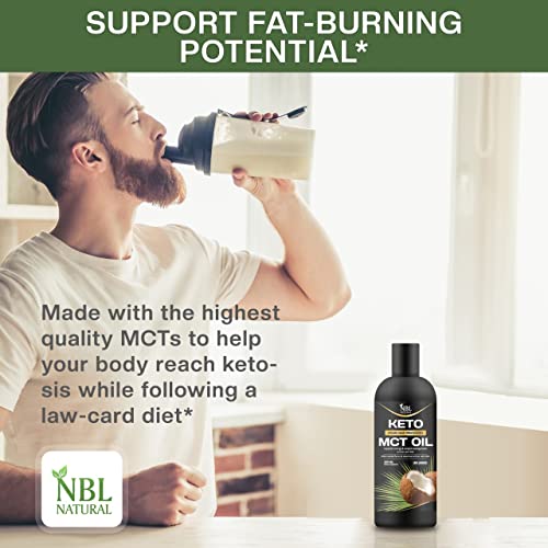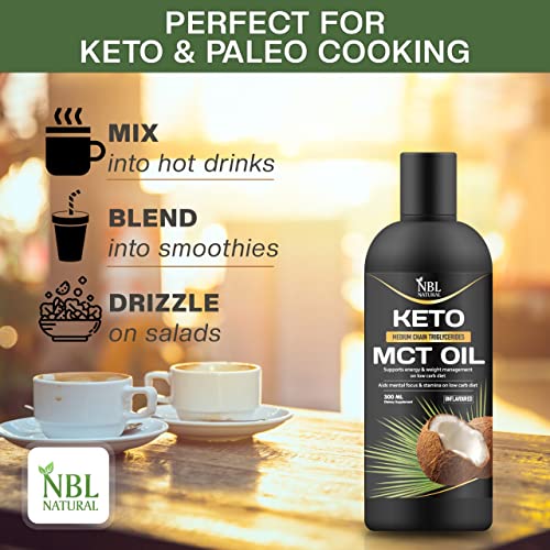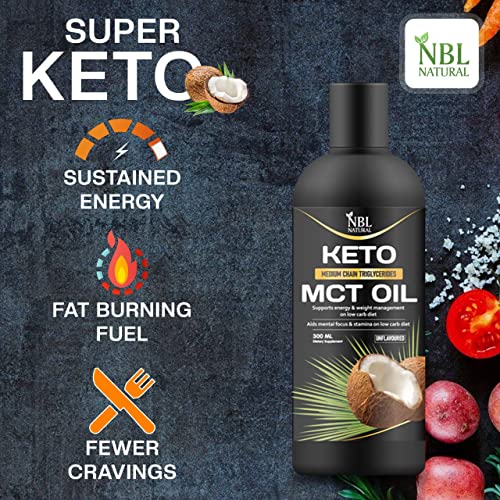 NBL NATURAL - زيت الدهون الثلاثية متوسطة السلسلة عضوي من جوز الهند، وقود كيتو للدماغ والجسم - غير منكه، نباتي وخالي من الجلوتين ومنتجات الألبان، لدعم الطاقة العقلية، مكمل غذائي، من ان بي ال ناتشرال، 300 مل