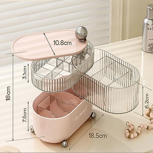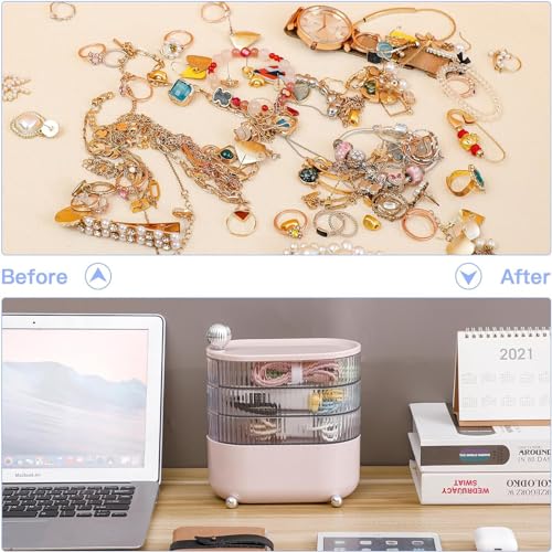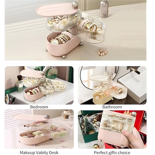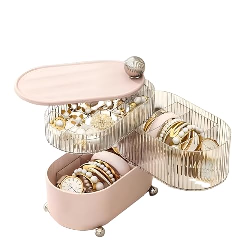NBLE - منظم مجوهرات دوار 360 درجة من 3 طبقات، شفاف مقسم لمستحضرات التجميل مع درج وغطاء شفاف، مقاوم للغبار ومقاوم للماء، للحلقان والخواتم والأساور والسلاسل من ان بي ال اي