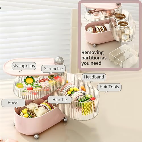 - ✅【تصميم قابل للدوران 360 درجة】التصميم القابل للدوران بزاوية 360 درجة يجعل من السهل عليكِ الوصول بسهولة إلى المجوهرات وإكسسوارات التجميل التي تحتاجينها وتخزينها. تصميم من 3 طبقات للفرز والتخزين، يساعد على فرز مجوهراتك المختلفة، والتي يمكن تدويرها بشكل عشوائي وفقًا لاحتياجاتك، وهي مريحة لك لإخراج ما تحتاجينه في صباح مستعجل.