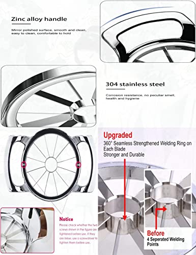 N\C - قطاعة تفاح شديدة التحمل من الفولاذ المقاوم للصدأ من ان سي، نسخة مطورة من 12 شفرة، مقشرة فواكه حادة للغاية، قطاعة مقاومة للصدأ، مقسم لما يصل إلى 4 قطع تفاح