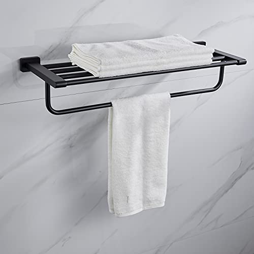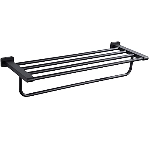 N\C - رف مناشف الحمام والمرحاض مع بار واحد، 61 سم، ستانلس ستيل، أسود