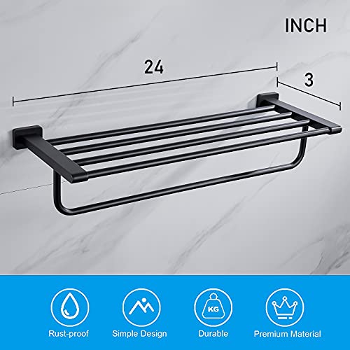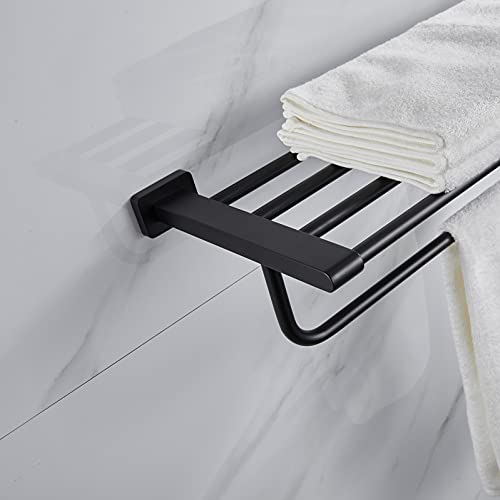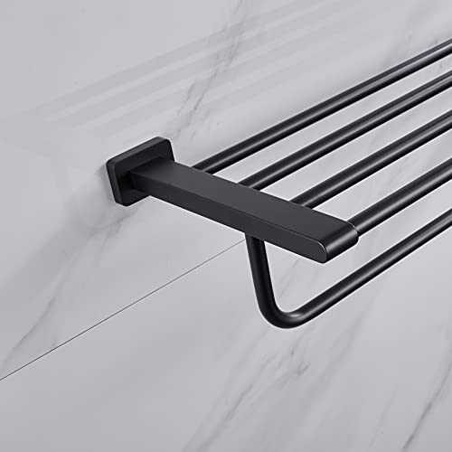- حامل مناشف مصنوع من الستانلس ستيل SUS 304 عالي الجودة، مقاوم للصدأ وسهل التنظيف، قوي ومتين من 3 طبقات بلمسة نهائية سوداء غير لامعة، مصمم لمقاومة الخدوش اليومية والتآكل وفقدان البريق