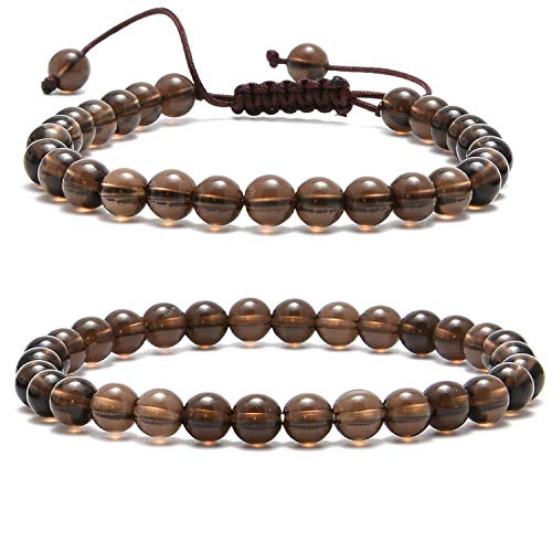 NCB - مجموعة من ازواج اساور من الاحجار الكريمة الطبيعية شبه الثمينة من ان سي بي مكونة من طبقتين من الخرز وقابلة للتعديل مناسبة لمجموعة الاصدقاء أو الازواج, 6mm, حجر, غير معروف