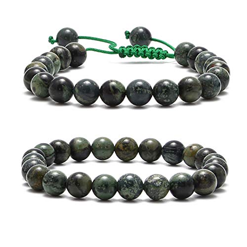 NCB - مجموعة من ازواج اساور الاحجار الكريمة الطبيعية شبه الثمينة ان سي بي مكونة طبقتين الخرز وقابلة للتعديل مناسبة لمجموعة الاصدقاء أو الازواج 8mm حجر غير معروف