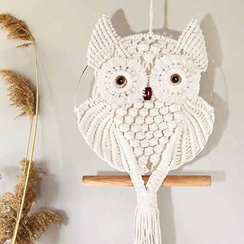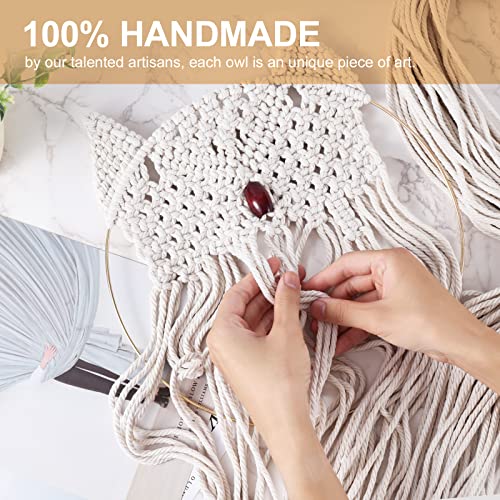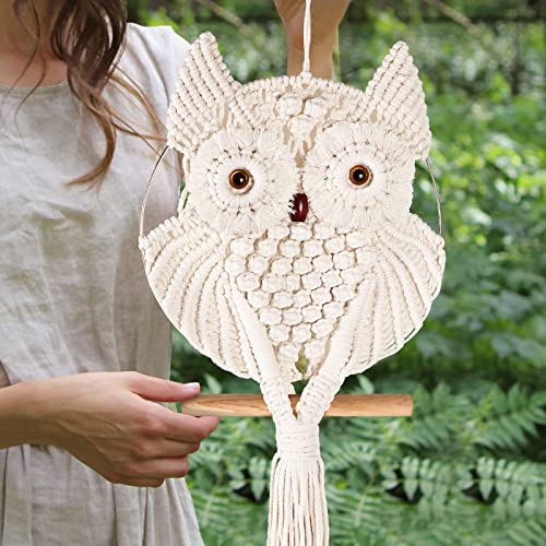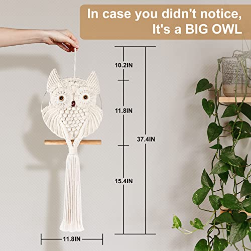 Snana - مكرمية انيقة تعلق على الحائط شكل بومة | ديكور حائط مصنوع يدويا | فن نسيج | غرفة منسوج | دعامات بوهو لتزيين المعيشة وغرفة النوم مقاس 37.4 انش ارتفاع و11.8 عرض عاجي