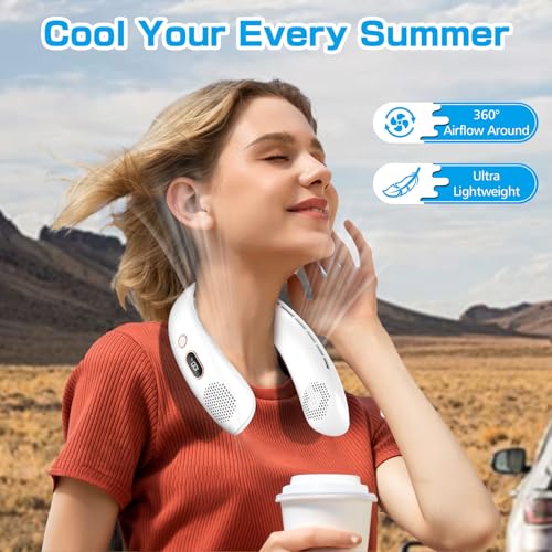 - 🌀[للاستخدام في الأماكن المغلقة والمفتوحة]: مروحة التبريد الشخصية الخاصة بنا مناسبة للرجال وللنساء، مما يوفر نسيمًا خفيفًا إلى رياح قوية. قابلة للحمل ويمكن ارتداؤها حول الرقبة للاستمتاع بالبرودة في الصيف في أي وقت وفي أي مكان. ذكية، آمنة ومريحة، وهي مناسبة لأي مكان مثل الدراسة، السفر، الأعمال المنزلية، الطبخ، المكتب والشواطئ- ستبقيك منتعشًا أثناء الموجات الحارة.