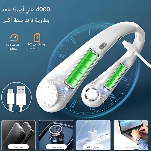 Generic - مروحة محمولة تثبت على الرقبة متعددة الاستخدامات قابلة للتعديل بزاوية 360 درجة مع بطارية عالية السعة للمكتب والمنزل والسفر والأماكن الخارجية (3 خيارات)