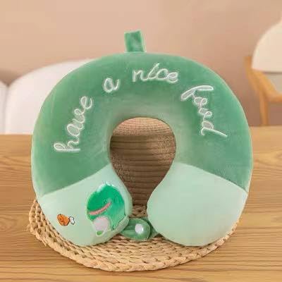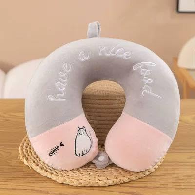 Generic - مخدة رقبة مصنوعة من مادة قطيفة مرنة، محشوة بألياف ناعمة مع عيون دائرية على شكل حرف U، مناسبة للسفر والسيارة والمكتب والطائرة - متوفرة بألوان وأشكال متعددة.