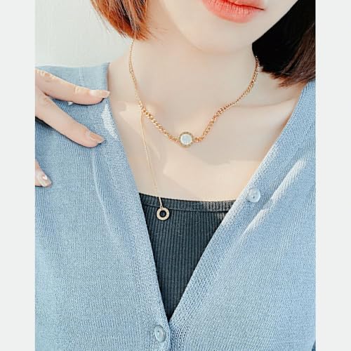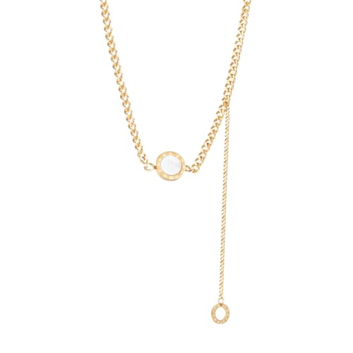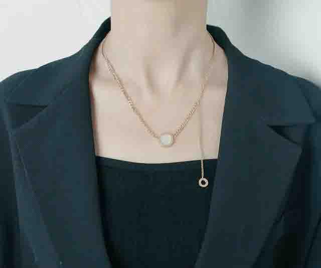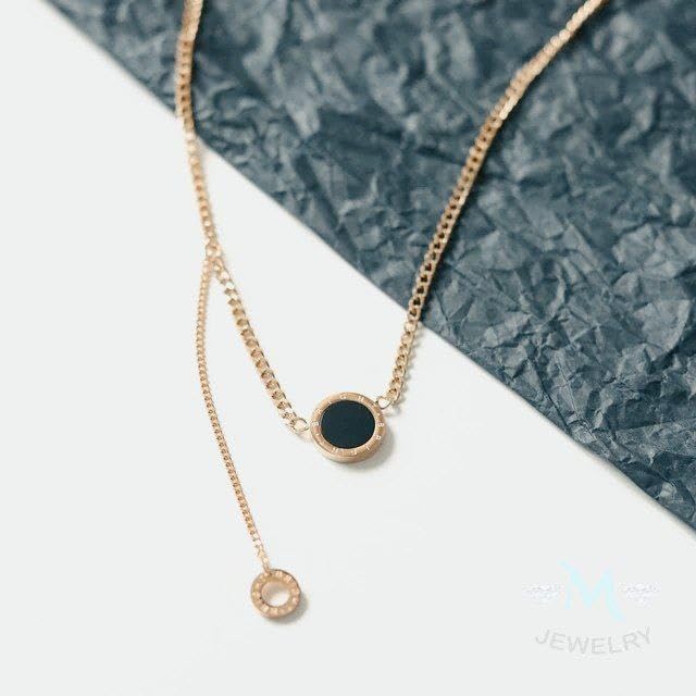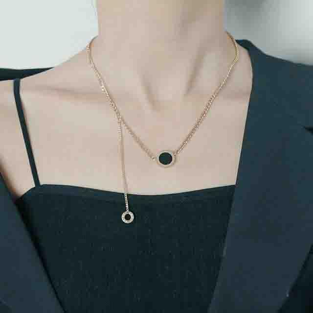 Generic - عقد بدلاية دائرية مزدوجة الجوانب باللونين الاسود والابيض مثالي للملابس الكاجوال او تقديم الهدايا - ستانلس ستيل مطلي بالذهب عيار 18 قيراط