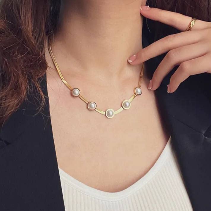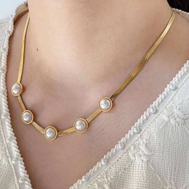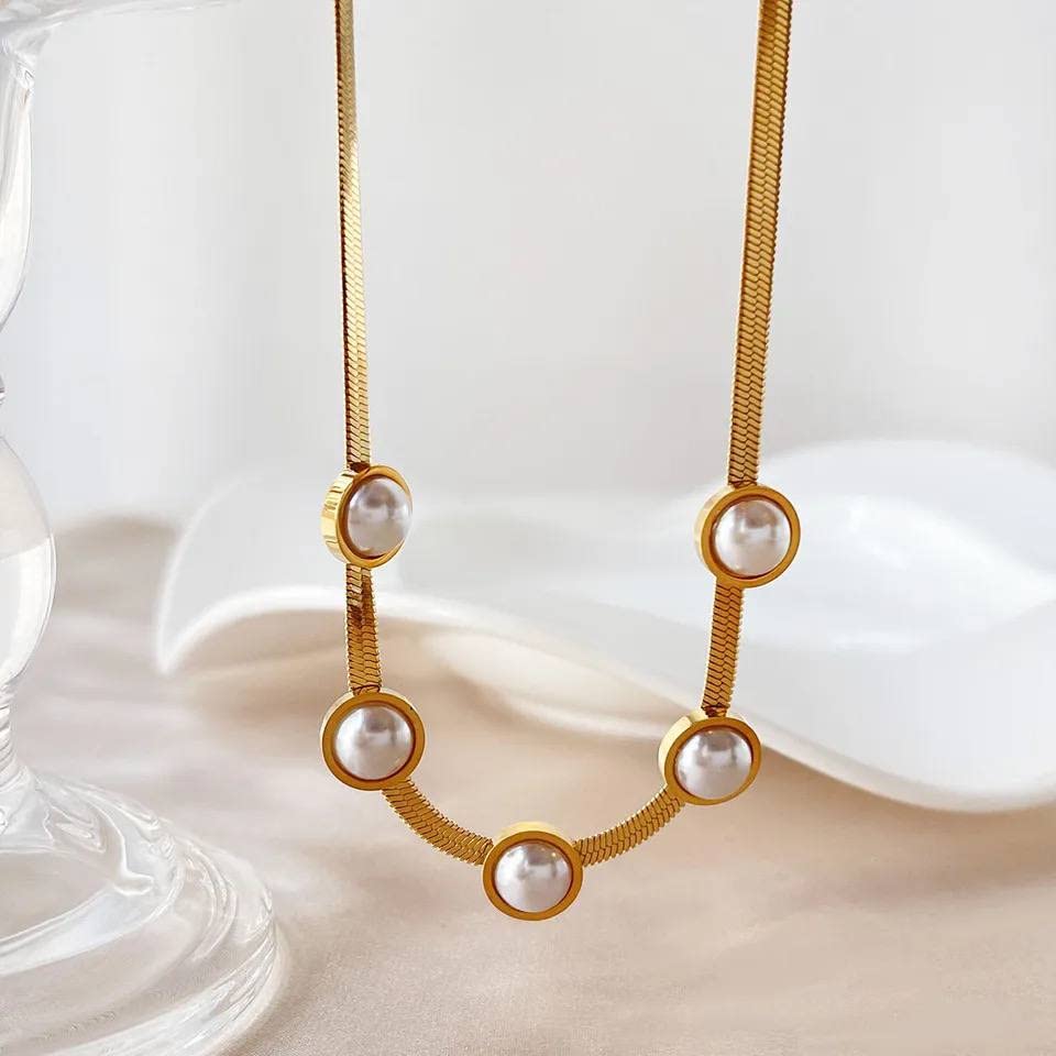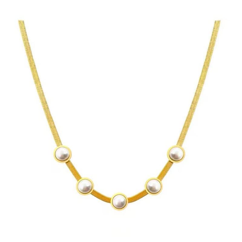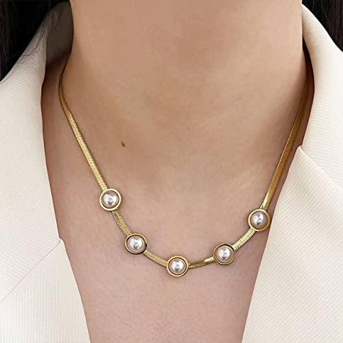 generic - عقد على شكل عظمة ثعبان من اللؤلؤ الصناعي من الستانلس ستيل - مطلي بالذهب عيار 18 قيراط, 45، للنساء