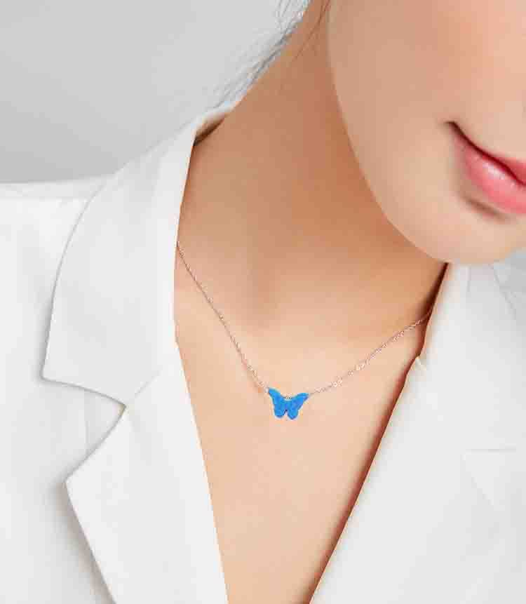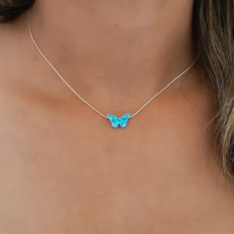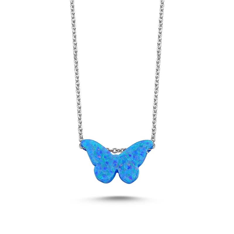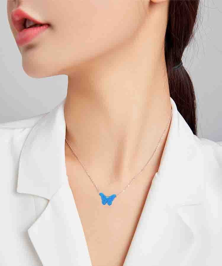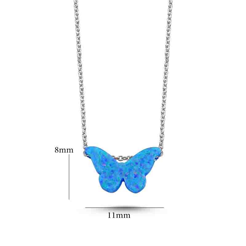 Generic - عقد فراشة ازرق اوبال صناعي - ستانلس ستيل 45 أوبال أزرق - للنساء
