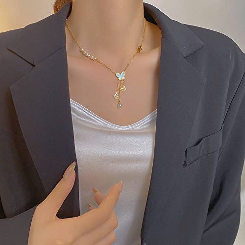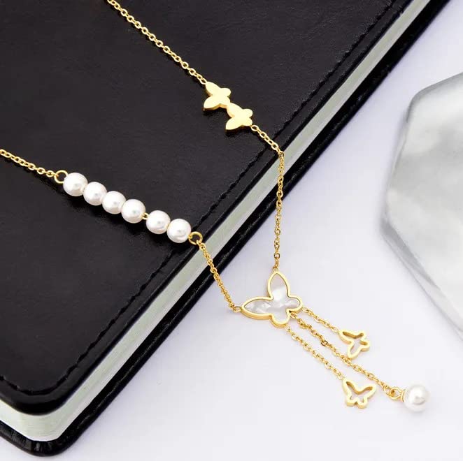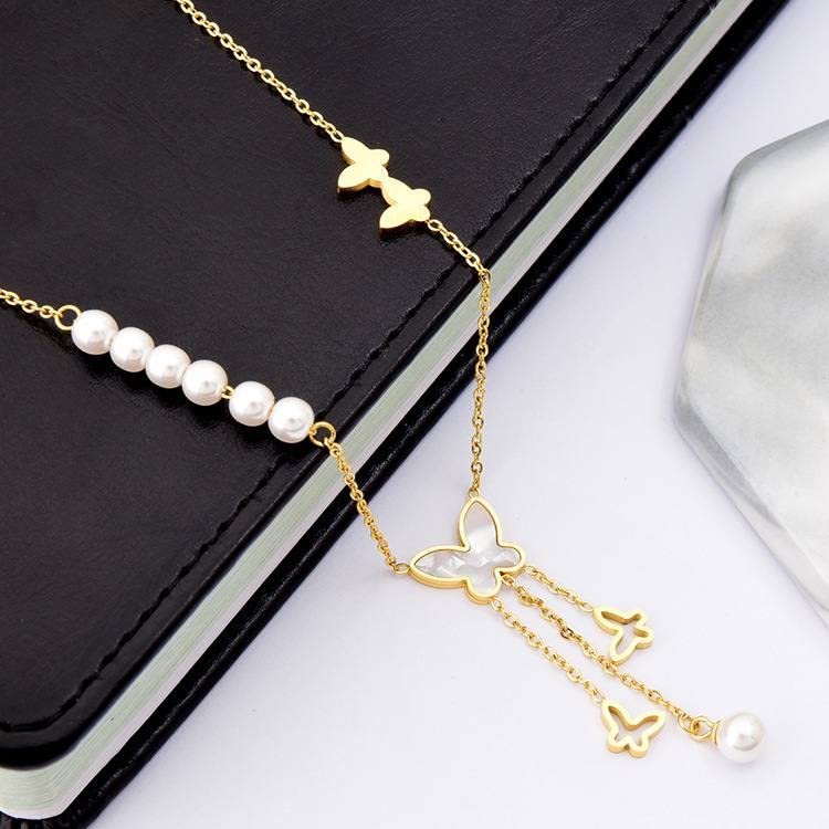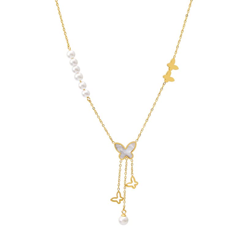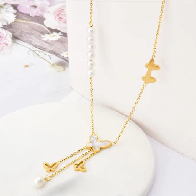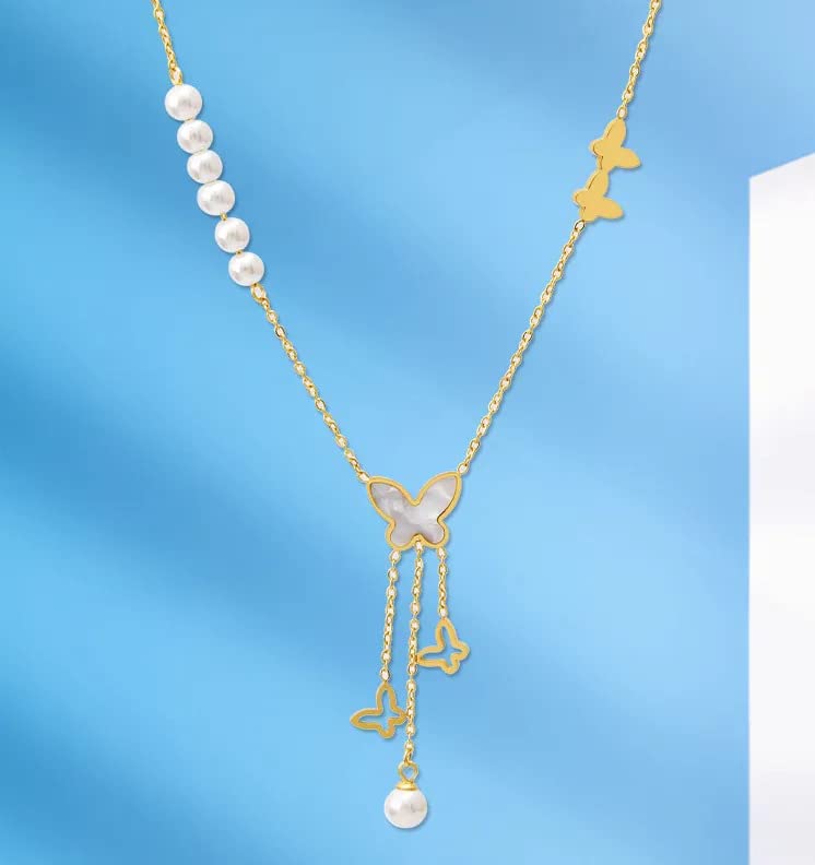 Generic - سلسلة من الستانلس ستيل مزينة بفراشة ومطلية بالذهب عيار 18 قيراط بنمط طوق دائري ضيق, 45، للنساء