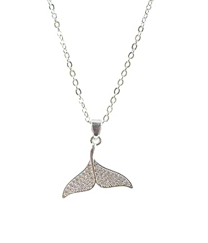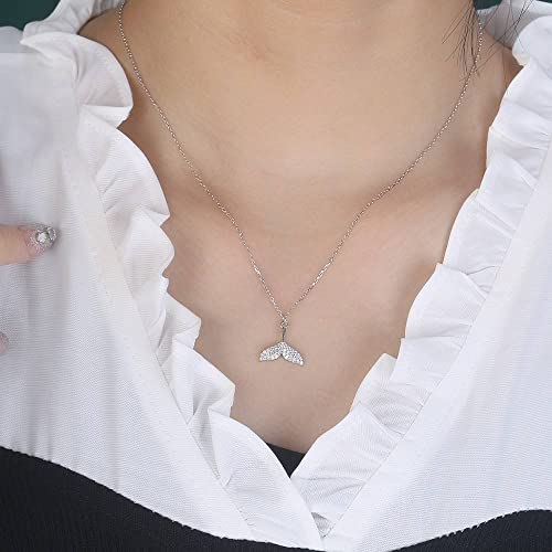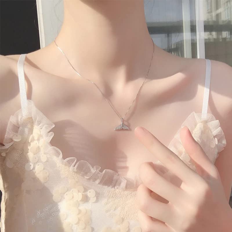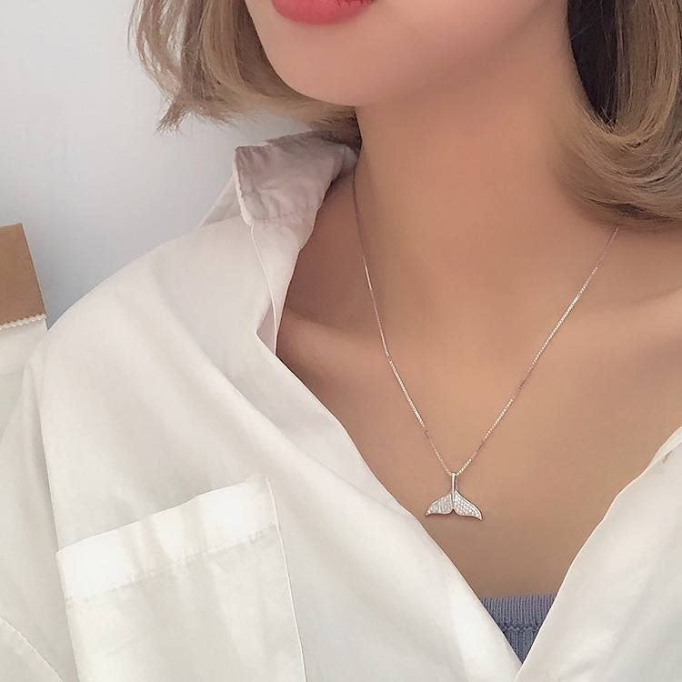 generic - قلادة بتصميم حورية البحر بذيل عميق على شكل كوريا من الزركونيا المكعب البلاتيني - مطلية بالذهب الابيض عيار 18 قيراط 45 زركونيا مكعب للنساء
