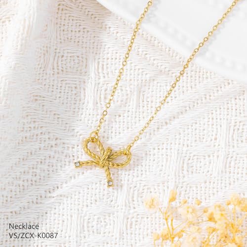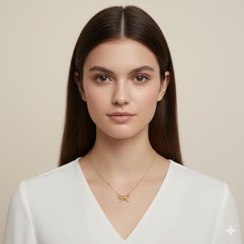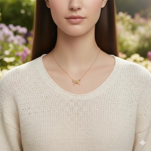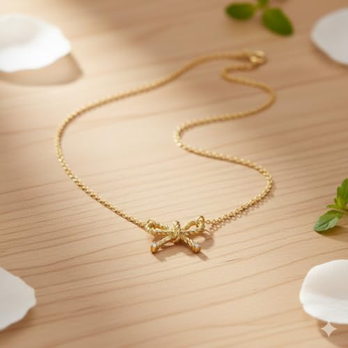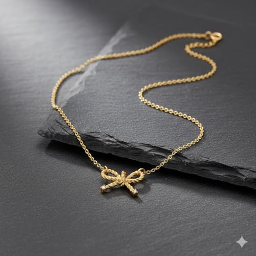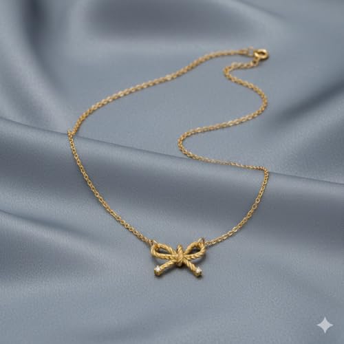 Generic - قلادة، قلادة رقيقة مطلية بالذهب، قلادة صغيرة مع قلادة فيونكة، سلسلة شوكر عصرية، قلادة فيونكة لطيفة، مجوهرات هدية