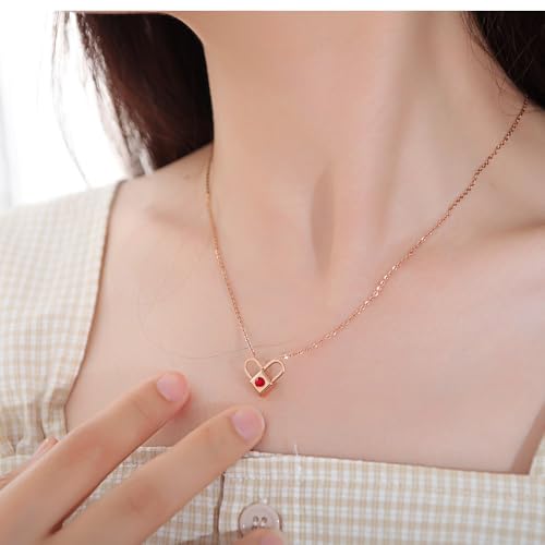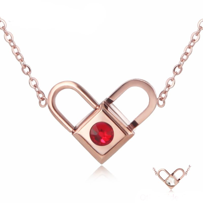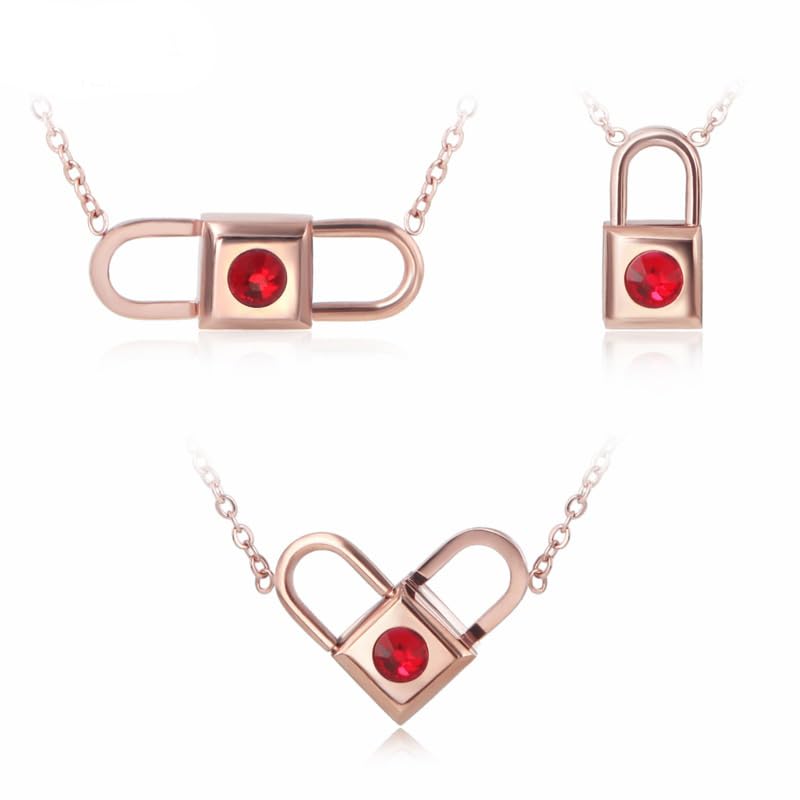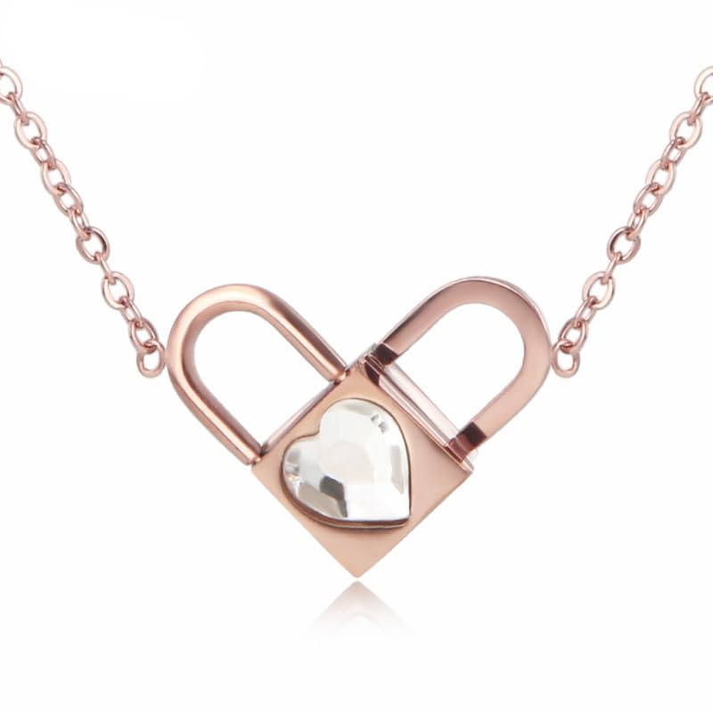 Generic - قفل وقلب بتصميم قلادة - ستانلس ستيل مطلي بالذهب، للنساء