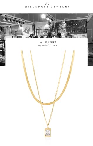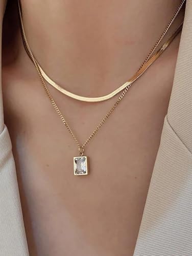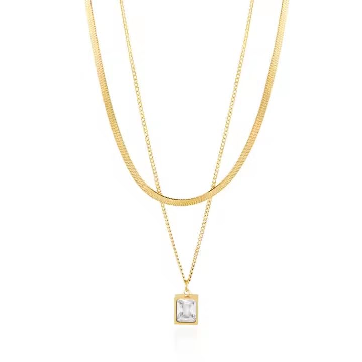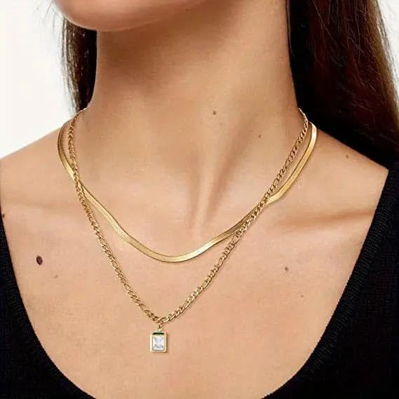 Generic - سلسلة مزدوجة قطعة بنمط ثعبان وقطعة مرصعة بحجر زركونيا مكعب مصنوعة من فولاذ مقاوم للصدأ مطلي بلون ذهبي عيار 18 قيراط لعيد الحب