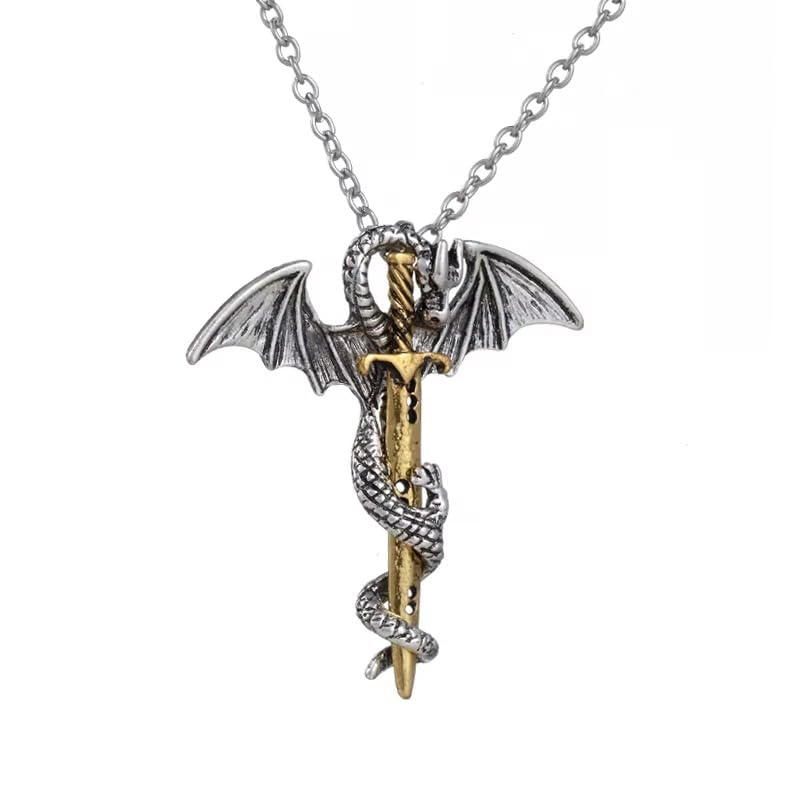 Generic - قلادة تنين الصداقة للرجال والاولاد - خليط معدني من الزنك الفضي والذهبي العتيق