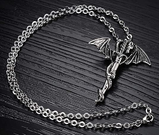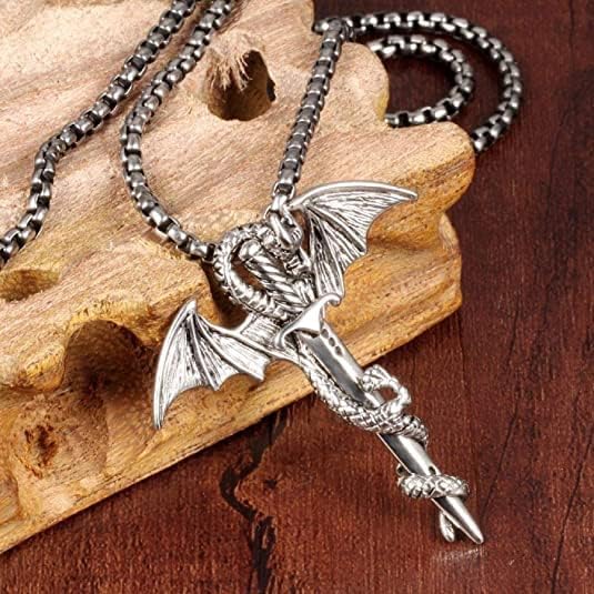 Generic - قلادة تنين الصداقة للرجال - خليط معدني من الزنك فضي